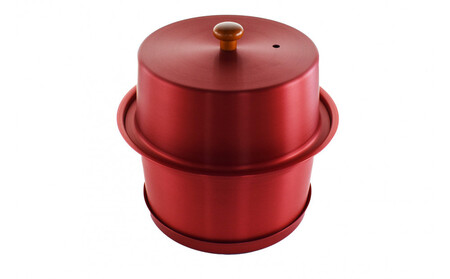 色:ブレイズレッド 重量:387g 外寸:組立時/φ195mm 高さ180mm 素材名:鍋本体・蓋・底皿/アルミ ツマミ/木材 金網/ステンレススチール