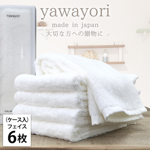 【フェイス6枚組】『贈り物に』ボックス入りオーガニックコットンタオル(33×100cm)やわよりF6-WH