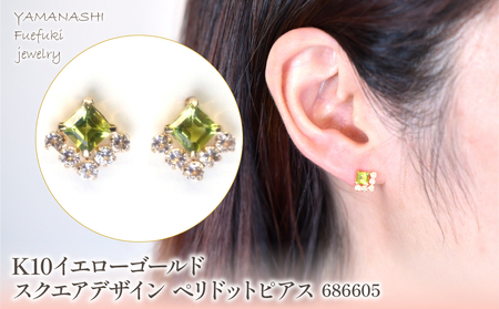 K10 イエローゴールド スクエアデザイン ペリドットピアス 管理番号686605 218-181-pd