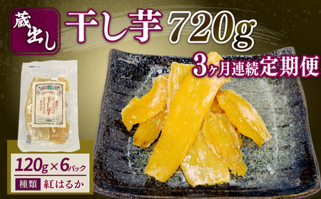 【3ヶ月連続でお届け】 藤枝産さつまいも「紅はるか」使用 蔵出し干し芋 1パック(120g)×6パック 約720g 合計約2160g