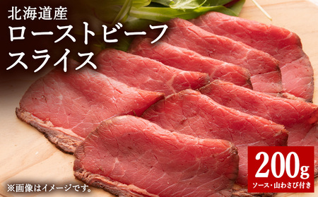 【北海道稚内市】北海道産ローストビーフスライス200g×1パック(ソース・山わさび付き)【配送不可地域:離島・沖縄県】