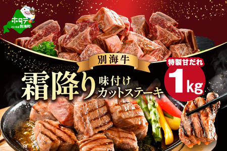 北海道産 霜降り カットステーキ肉 計1kg (特製甘だれ) 別海町 ステーキ