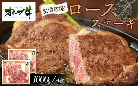 《生活応援》オリーブ牛ロースステーキ 1000g(4枚入り)