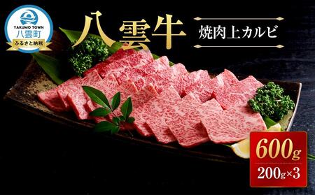 八雲牛 焼肉上カルビ 総重量600g (200g×3パック)