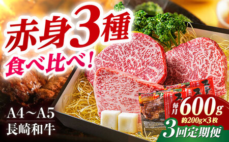 【3回定期便】赤身 長崎和牛ステーキ600g[ECS054]ステーキ