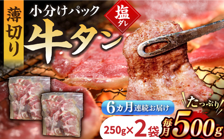 【6回定期便】【塩だれ】九州産和牛の牛タン 約500g(約250g×2パック)長与町/岩永ホルモン [EAX086] 国産 焼肉 薄切り スライス