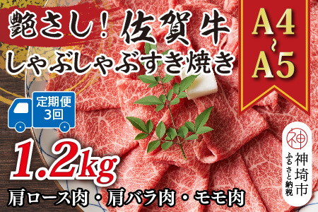 【3か月定期便】【A4~A5】佐賀牛しゃぶしゃぶすき焼き用 400g×3回(H112288)