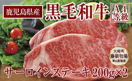 鹿児島産 黒毛和牛(A4等級)サーロインステーキ 2枚入 合計400g