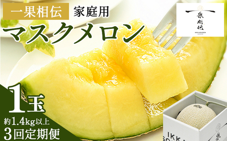 【3ヶ月定期便】マスクメロン 家庭用 1.4kg以上 1玉入り 果物類 メロン青肉 3回 フルーツ Wtn-0038