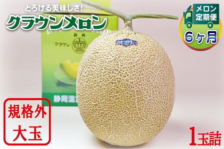 6ヵ月 毎月1回の定期便 静岡クラウンメロン規格外大玉(約1.7kg以上)×1玉 ギフト化粧箱入 食べ頃日目安が記入されたパンフレット入り 【賞味期限】商品到着から約2~4日(食べ頃) 定期便の場合、収穫状況により記載の容量より大きくなる時がございます。 写真はイメージとなります。