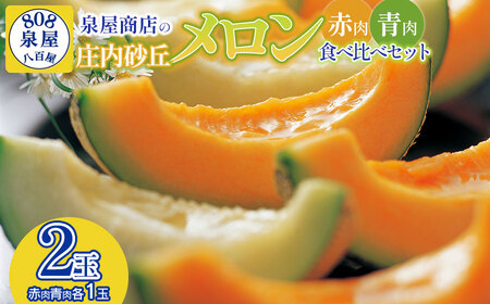 【令和8年産先行予約】泉屋商店の庄内砂丘メロン 赤肉・青肉 食べ比べセット 2玉入 K-822