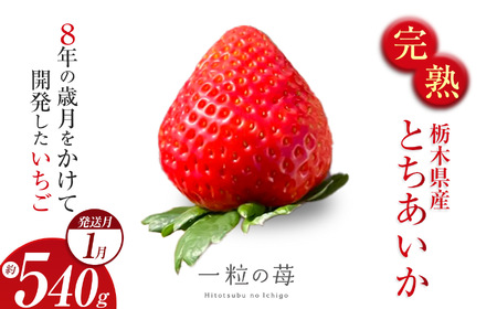 ■お礼品の内容について ・とちあいか 大粒 約270g×2パック 合計 約540g ※いちごの状況により多少前後することがあります。1パック当たり5~12粒入っています。 ■賞味期限:出荷日+4日 ※到着後、すぐにお礼品の状態をご確認のうえ、お早めにお召し上がりください。