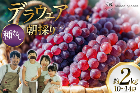 【期間限定発送】 ぶどう デラウェア 10~14房 約 2kg 朝採れ [oboco grapes 山形県 高畠町 tk06ayt250007]