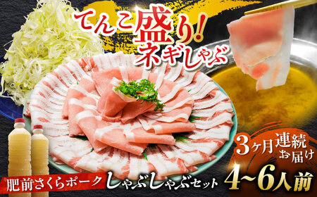【全3回定期便】白髪ネギてんこ盛り!肥前さくらポーク 豚しゃぶセット(ロース・バラ) 計3kg 4-6人前 吉野ヶ里町/やきとり紋次郎[FCJ096]