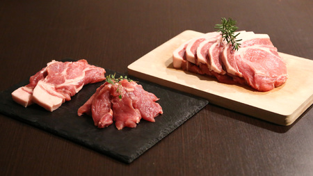 ・バラスライスまたはローススライス:350g×2 ・ロースかつ用(120g×3枚):360g×2 ・肩ロースしょうが焼き用:300g×2 ・豚ミンチ:500g×1 ・こま切れ:500g×1 合計3.02kg
