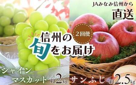 【2026年発送先行予約】【定期便】南信州産 人気果実の返礼品セット <シャインマスカット><サンふじ> 2回発送