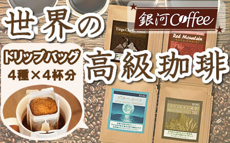 【12203-0102】世界の高級コーヒー(ドリップ式)4個×4種 銀河コーヒー