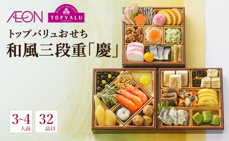 トップバリュおせち 和風三段重「慶」【3~4人前・32品目】 お節 正月 年末 迎春 冷蔵 ギフト お取り寄せ プレゼント グルメ イオン 縁起物 千葉市 千葉県 イオンリテール