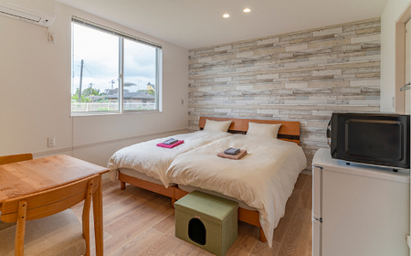 一室一泊分 1階/10.4帖(16.1㎡) 定員:2名&ワンちゃん2匹 ※浴室はバスタブが無くシャワーのみとなります。 ※定員を超えての宿泊の場合、追加料金が必要となります。予約時にご相談ください。