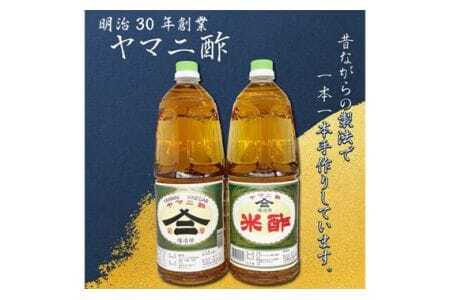 【内容】 ヤマニ酢 菊誉、ヤマニ酢 米酢 各1.8リットル×1本ずつ 賞味期限:製造日から1年 提供元:道の駅 みのりの郷東金
