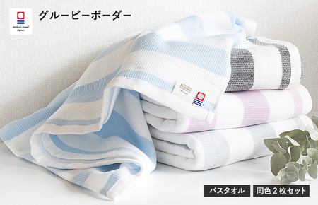 (今治タオルブランド認定)グルービーボーダー バスタオル 2枚セット グレー【I003020BT2GY】