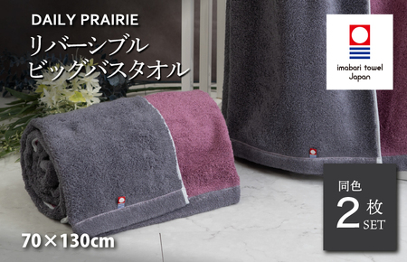 (今治タオルブランド認定)DAILY PRAIRIE リバーシブルビッグバスタオル 2枚セット (チャコールグレー/ダスティピンク) [I002960BBT2CGY/DP]