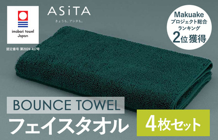(今治タオルブランド認定品)ASiTA BOUNCE シリーズ フェイスタオル 4枚セット(グリーン)【I003610FT4G】