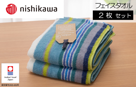 (今治タオルブランド認定)西川 ムースパフ フェースタオル 2枚(ブルー)MF5002【I003650FT2B】