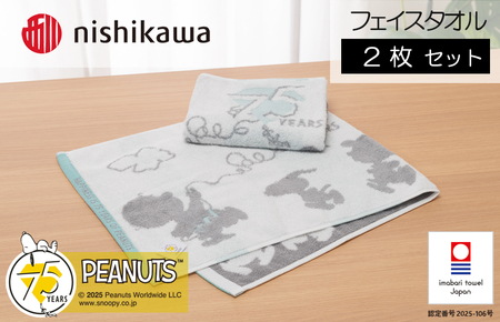 (今治タオルブランド認定)スヌーピーピーナッツ ムースパフ フェースタオル<75周年記念アート>2枚(ホワイト)PN5603TW【I003740FT2W】
