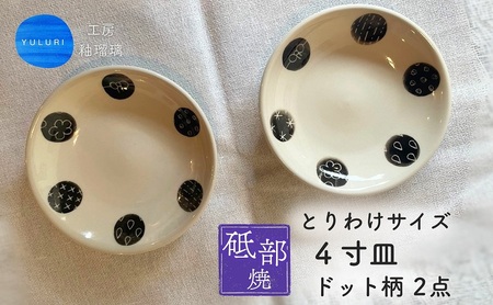 <砥部焼>とりわけサイズ4寸皿 (ドット柄)2点【工房釉瑠璃 女性作家 白 黒 食器 食洗器対応 おしゃれ かわいい お皿 インテリア小物 陶芸 手作り ギフト 贈答】