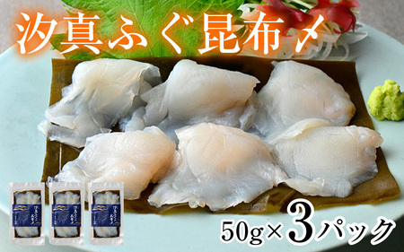 □容量 汐真ふぐ昆布〆 50g/パック×3パック □原材料名 まふぐ(福井県産)、小安促成折(千枚用昆布)(国産)、塩 □アレルギー 無し □消費期限 製造日より365日以内