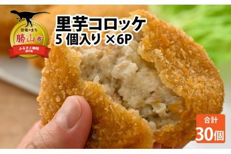 ■内容 里芋コロッケ 5個入り×6P(1個あたりおよそ60g) ■原材料 里芋、じゃがいも、人参、玉ねぎ、牛肉、豚肉、小麦粉、パン粉、植物性油脂、食塩、胡椒、醸造アルコール、大豆、水あめ、ぶどう糖果糖液糖、小麦発酵調味液、米、米こうじ、酸味料 ■アレルギー 小麦、牛肉、豚肉、大豆