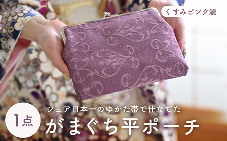 ゆかた帯のシェア日本一の帯で仕立てたがまぐち平ポーチ (くすみピンク濃) 1点 [B-9402_02]