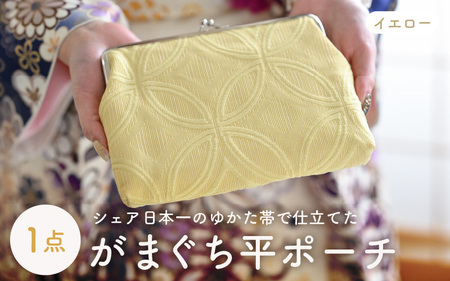 ゆかた帯のシェア日本一の帯で仕立てたがまぐち平ポーチ (イエロー) 1点 [B-9402_03]