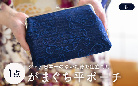 ゆかた帯のシェア日本一の帯で仕立てたがまぐち平ポーチ (紺) 1点 [B-9402_04]