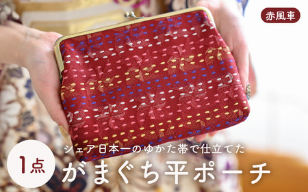 ゆかた帯のシェア日本一の帯で仕立てたがまぐち平ポーチ (赤風車) 1点 [B-9402_05]