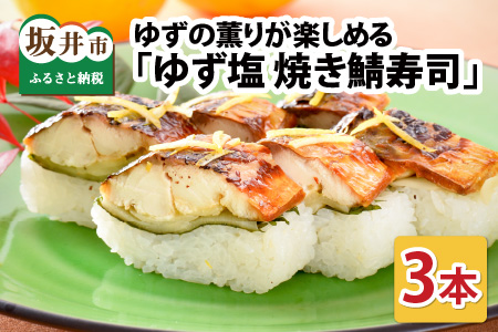 ゆず塩焼き鯖寿司 3本 鯖寿司 冷凍 [A-0536]