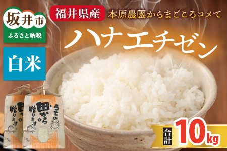 【先行予約】【令和8年産・新米】 ハナエチゼン10kg(5kg×2袋) ~本原農園からまごころコメて~(白米)【2026年9月上旬以降順次発送予定】 [B-8912]