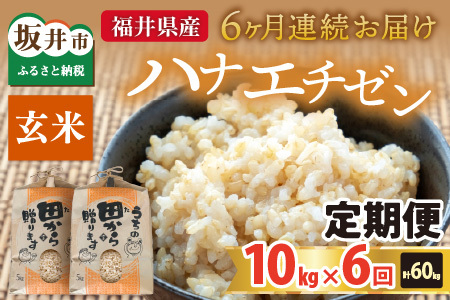 【先行予約】【令和8年産・新米】定期便 ≪6ヶ月連続お届け≫ ハナエチゼン10kg×6回 計60kg ~本原農園からまごころコメて~(玄米)【2026年9月上旬以降順次発送予定】 [K-8906_02]