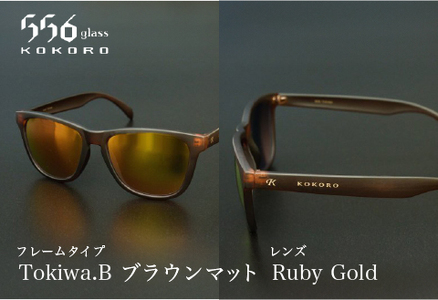・サングラス ・ケース ・メガネ拭き 【カラー】 ■Tokiwa.B(ブラウンマット) レンズ:Ruby Gold(ネオコントラスト偏光ルビーゴールド) ・偏光度 99% ・黄色光カット 70% ・可視光線透過率 30% ・UVカット 99.9% 【原材料】 ・レンズ:1.60 MR 8 NeoContrast機能レンズ ・フレーム素材:ポリカーボネイト(塗装) 【場産地品に該当する理由】 類型:3 鯖江市内の工場において、原料の加工から研磨・組み立て等の工程を行うことにより、相応の付加価値が生じているもの