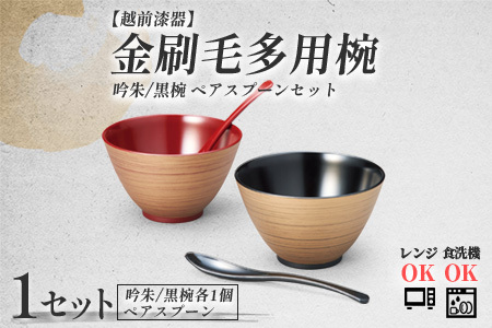 金刷毛多用椀ペア スプーンセット 吟朱・黒 食洗機・レンジ対応