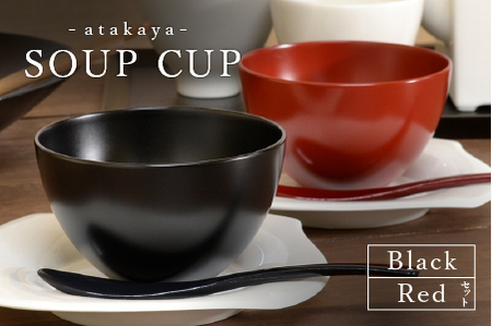 【食洗機対応!】スープカップペアセット BLACK&RED