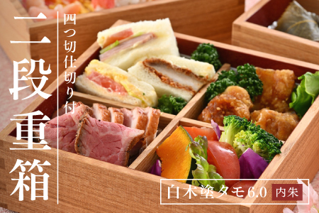 白木塗タモ6.0 二段重 内朱 仕切り付