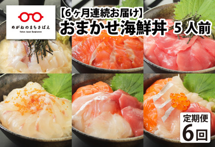 【6ヶ月連続お届け】【定期便】【刺身用】おまかせ海鮮丼の具 60g(タレ付)× 5人前 × 6回【最新の冷凍技術】