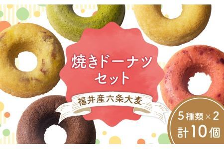 福井産六条大麦焼きドーナツセット(5種類×2 計10個) [A-034001]
