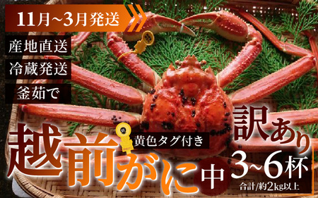 【先行予約】【訳あり】 越前がに 合計2kg以上(3~6杯)【11月~3月発送】 日本海 直送