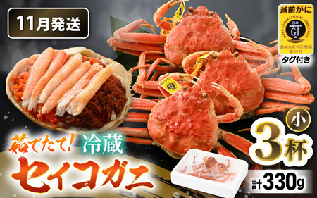 【冷蔵】 旬のセイコガニ 小 3杯 計330g以上(茹で前) 説明書付き 食べ切数量!全て地物!天然! ズワイガニメス [m21-x001_11]