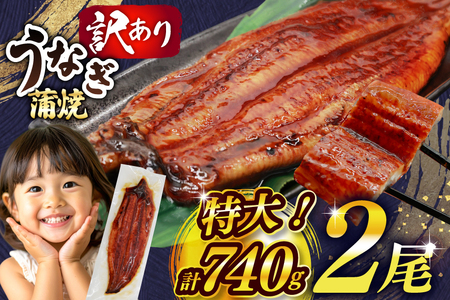 うなぎ 訳あり 鰻 蒲焼 特大 2尾 計約740g 不揃い 規格外 小分け [大黒物産 福岡県 宇美町 um40bak830009]