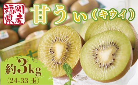 ■内容量 福岡産キウイ・甘うぃ約3kg(24-33玉) 【原材料】 キウイ 【賞味期限】 発送日+5日(目安) 【保存方法】 ※玉の大きさには多少のばらつきがございます。 ※天候・収穫状況により、発送予定から前後する場合がございます。 ※果物のため、お早めにお召し上がりください。 ■アレルギー キウイフルーツ