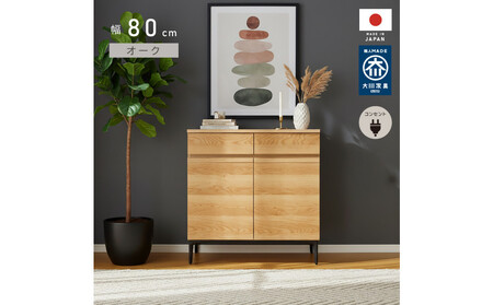 サイドボード 幅80cm オーク 引出し 2杯 開き戸 稼働棚 コンセント 収納 天然木 国産 大川家具 完成品